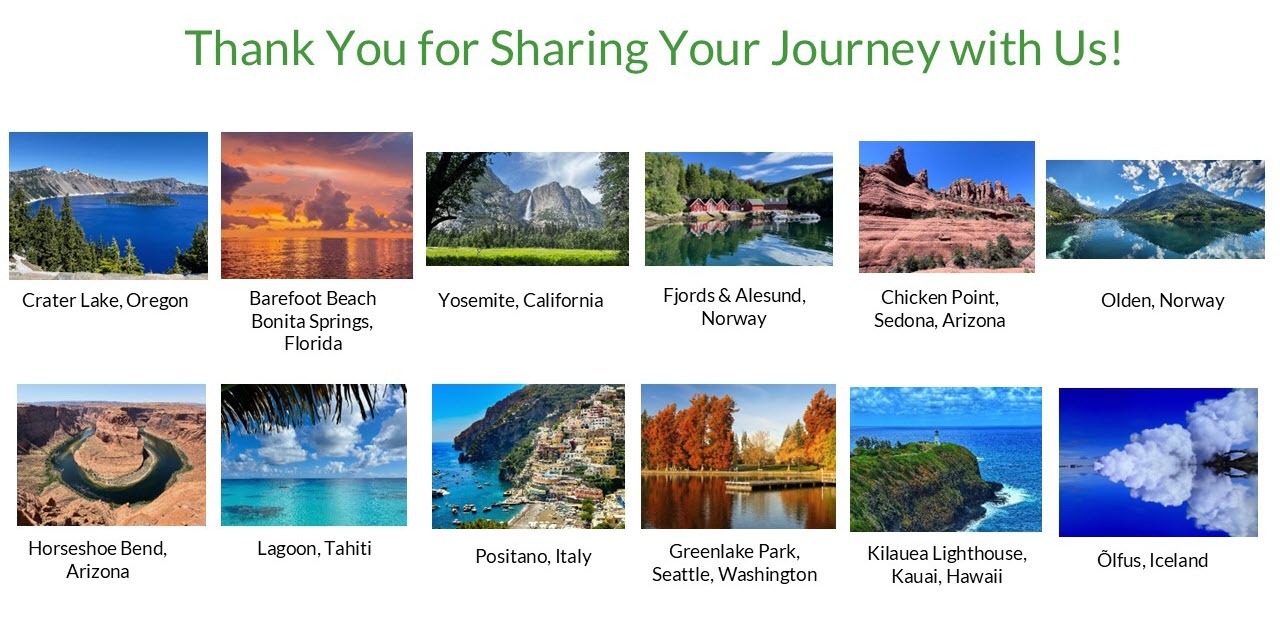 - Clients will be given opportunity to vote on photo finalists to select winning photos. Prizes will be awarded for first second and third place with only one prize per submitter household.
